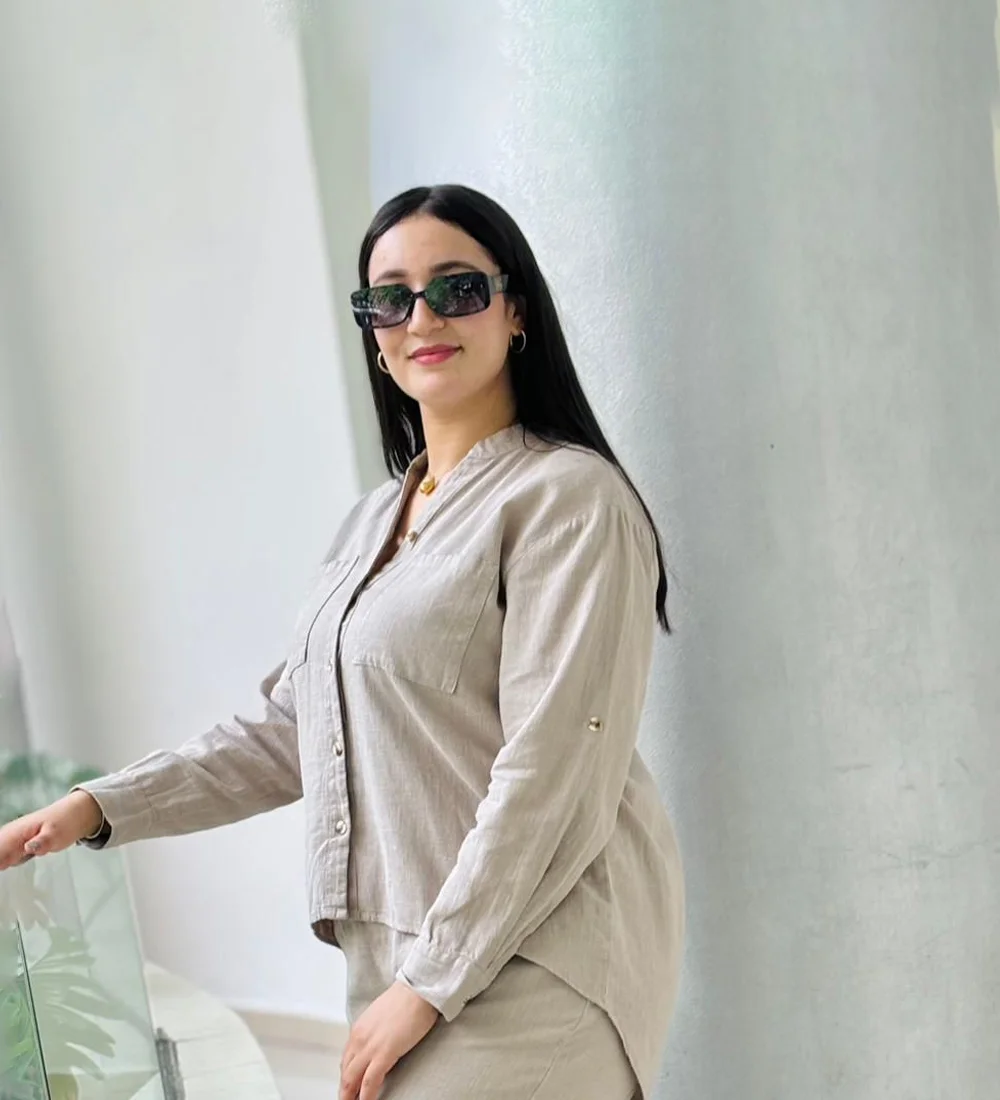 Ce confortable ensemble en lin offre une touche de sophistication avec sa chemise col V, manches longues et sa coupe ample, parfait pour une allure élégante et décontractée.