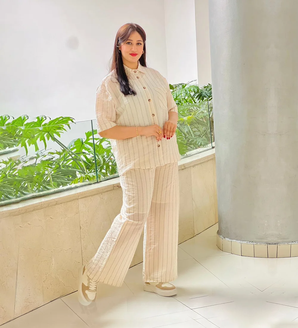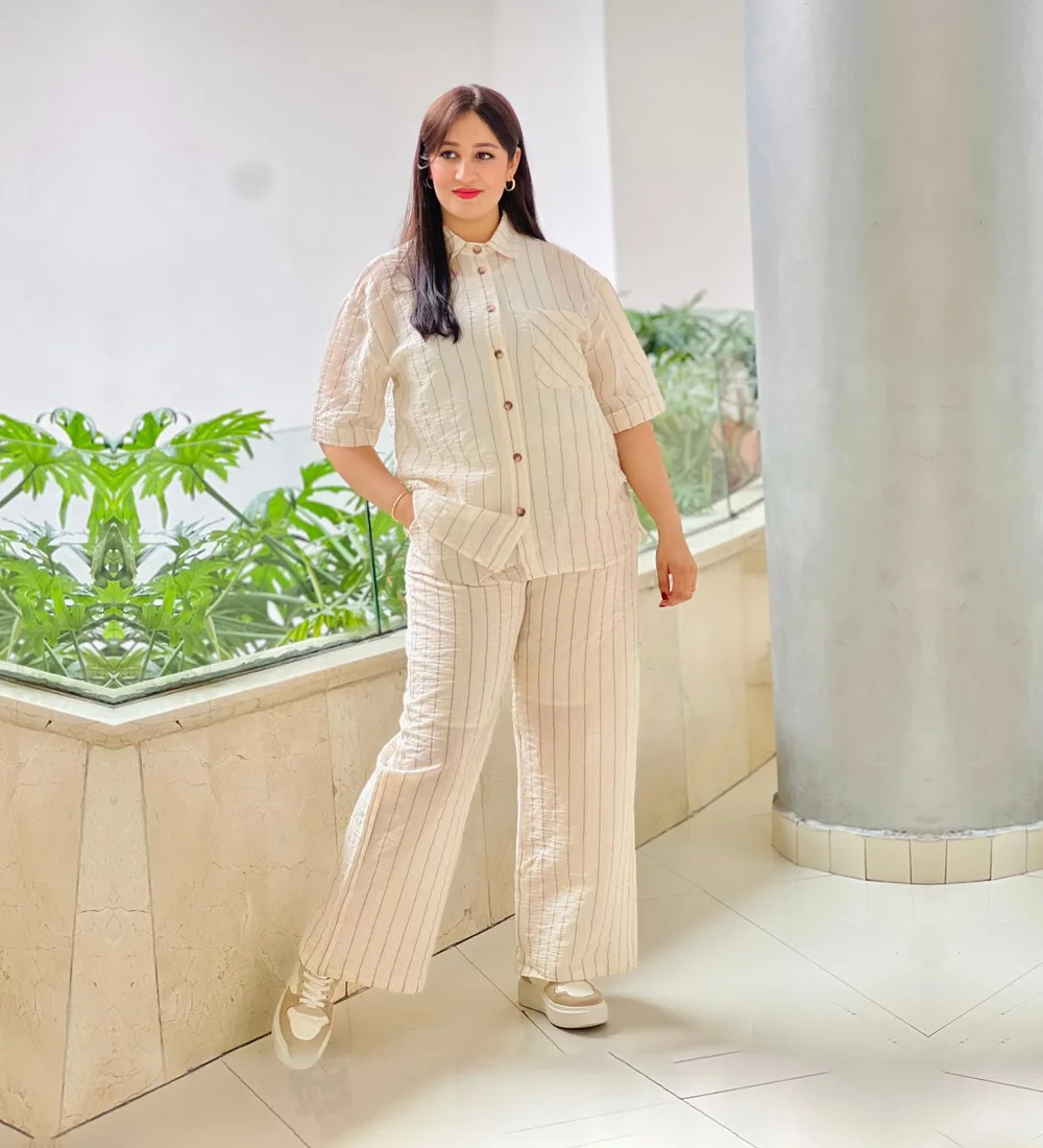 Ensemble Décontracté en Lin Rayé